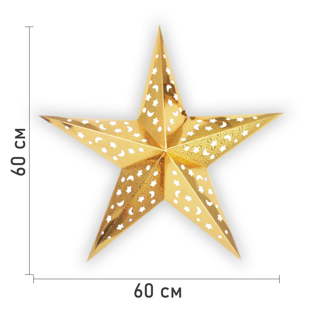 Звезда бумажная 60 см голографическая золотая