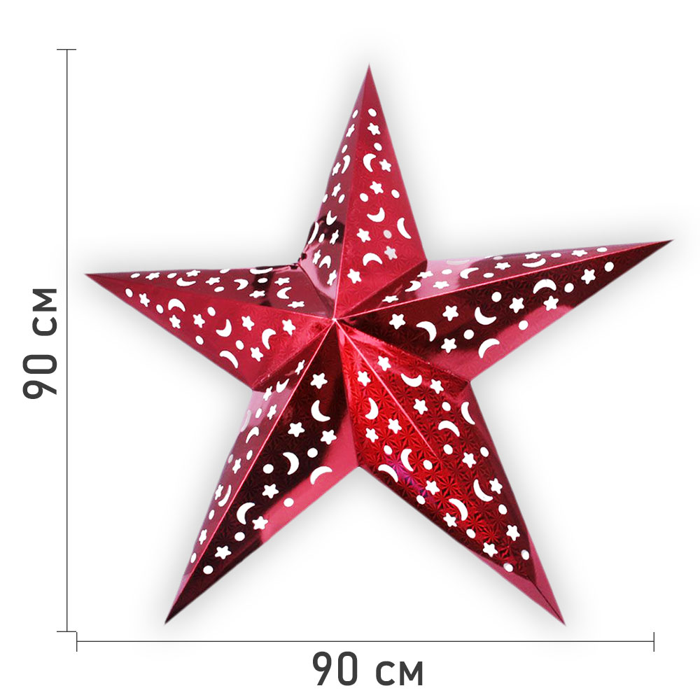 Звезда бумажная 90 см голографическая красная