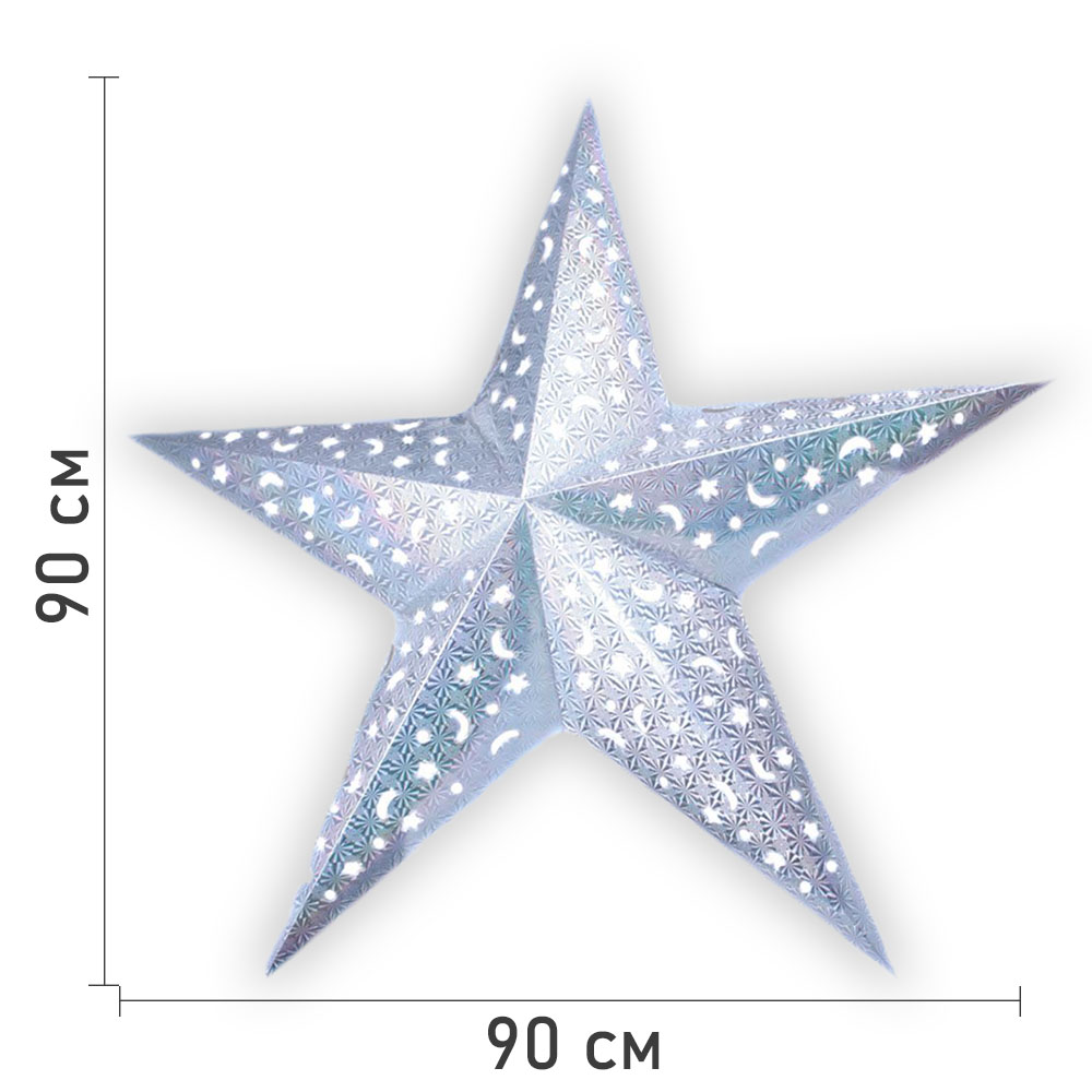 Звезда бумажная 90 см голографическая серебряная