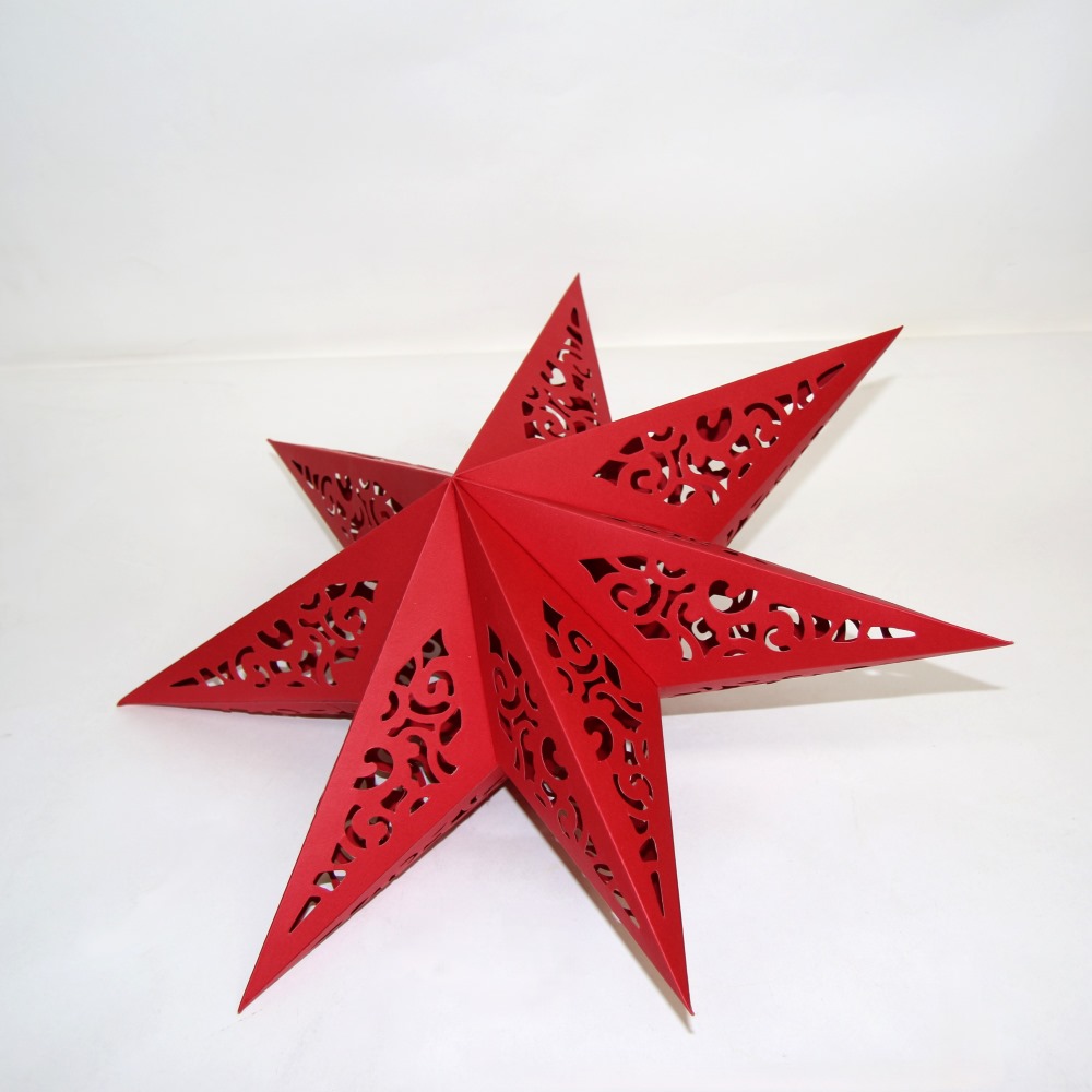 Семиконечная объемная звезда 45 см — великолепный декор из тонкого перфорированного картона. Создает красивые световые эффекты. Поставляется в сложенном виде, в комплекте шнур для фиксации объема и подвеса.