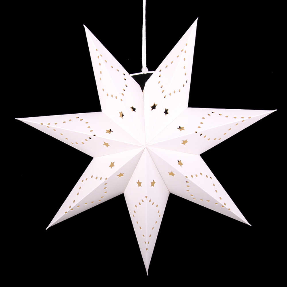 Семиконечная объемная звезда 75 см — великолепный декор из тонкого перфорированного картона. Создает красивые световые эффекты. Поставляется в сложенном виде, в комплекте шнур для фиксации объема и подвеса.