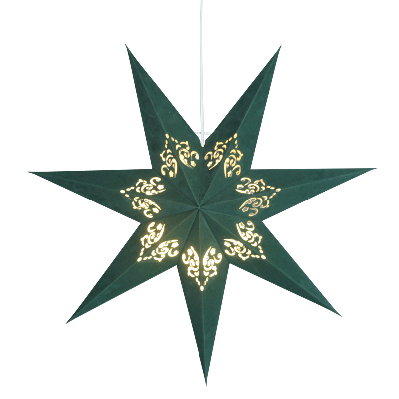 Звезда-светильник 60 см семиконечная, Бархат с перфорацией, т.зеленый